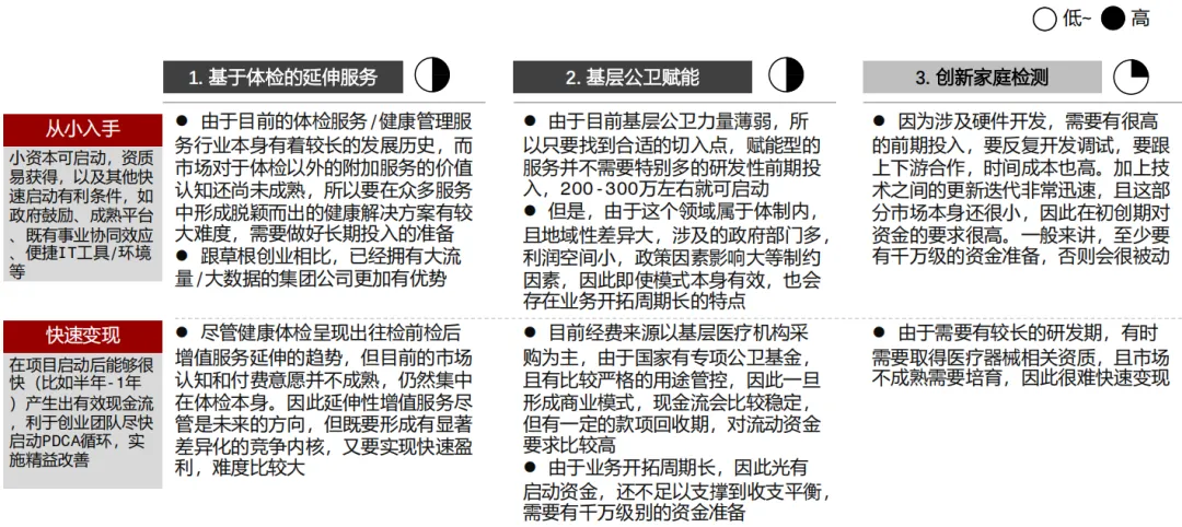 ▶ 易着手性:创新健康检测领域的商机普遍对资金要求高,不易着手