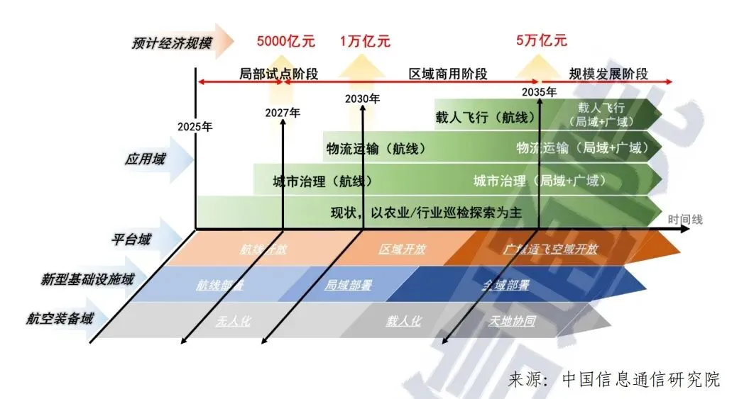 报告提出,低空产业将遵循“局域-区域-规模”三阶段发展路径: