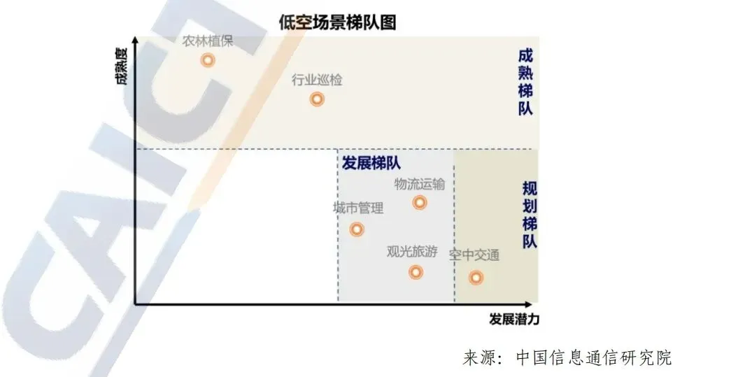 第三梯队(载人空中交通),产业与政策仍在规划和起步阶段,装备还处于研发期,未来具有较大发展潜力。