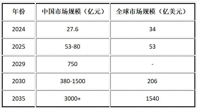 中国已成为全球领先的人形机器人生产国,2024年市场规模约27.6亿元,约占全球市场的一半。预计2025年市场规模将达到53亿元至80亿元,较2024年增长90%至190%,增速远超全球平均水平。