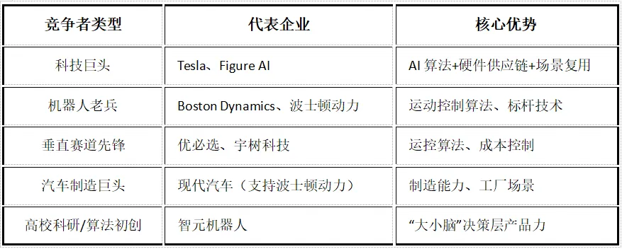 全球人形机器人市场呈现“五路大军”同台竞技的格局: