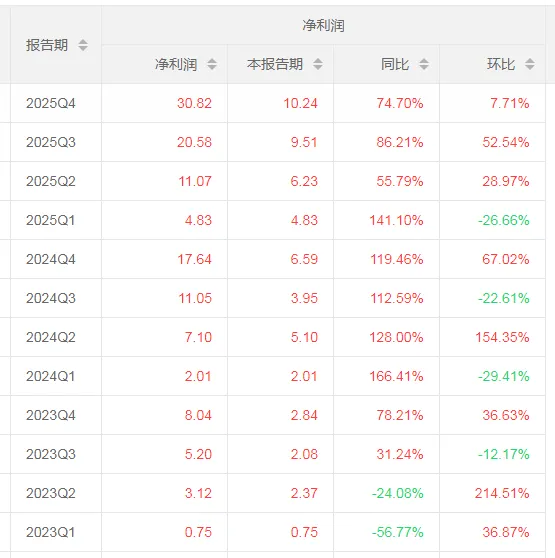 4、历年净利润同比、环比分析