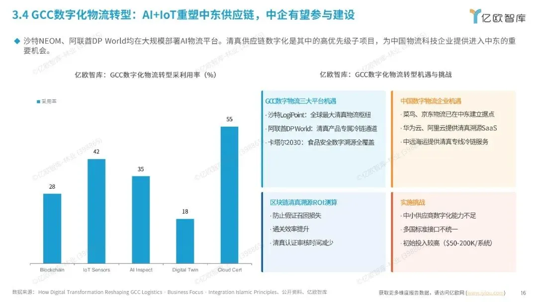参与数字化改造:与国际物流企业合作,扩展清真认证货运业务。 输出冷链技术:利用中国在冷链物流领域的技术优势,参与GCC地区数字化物流转型。