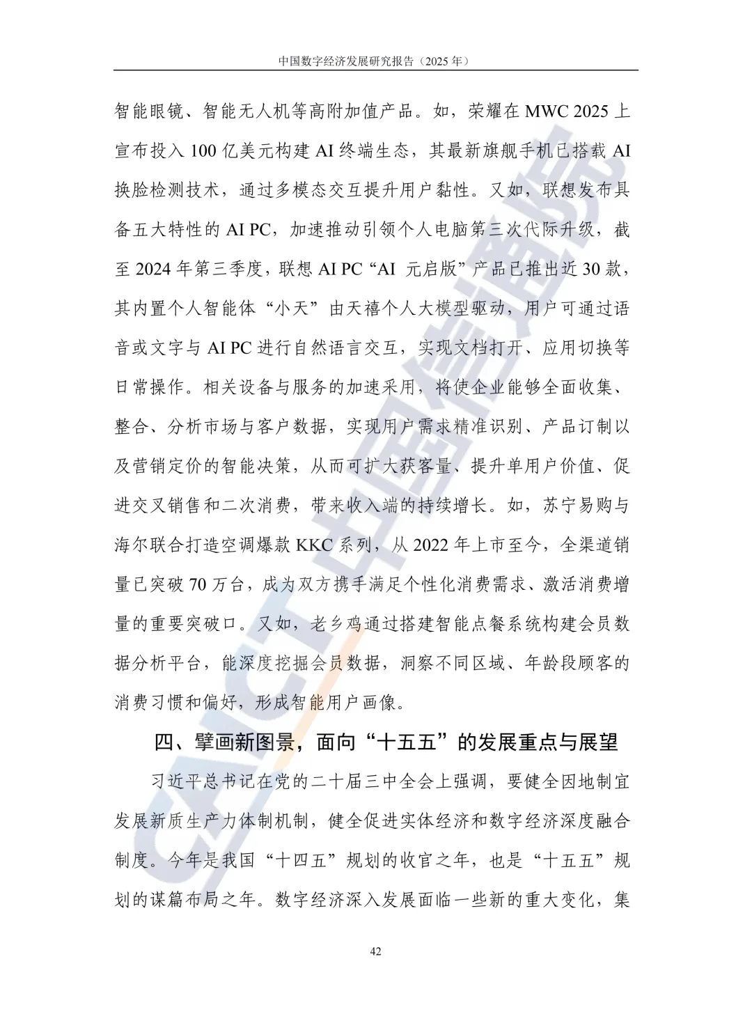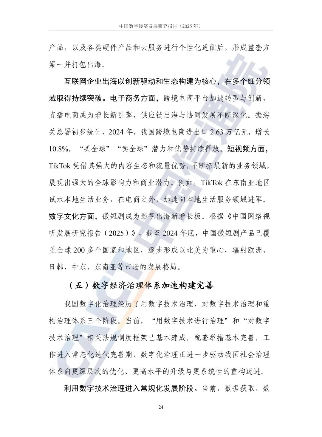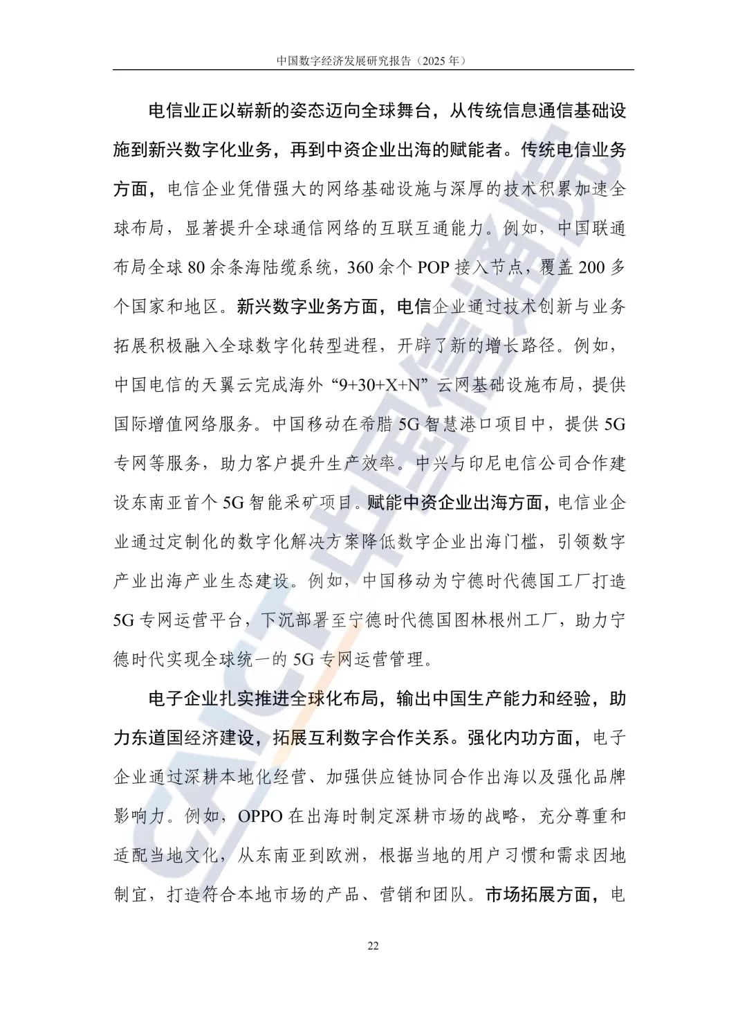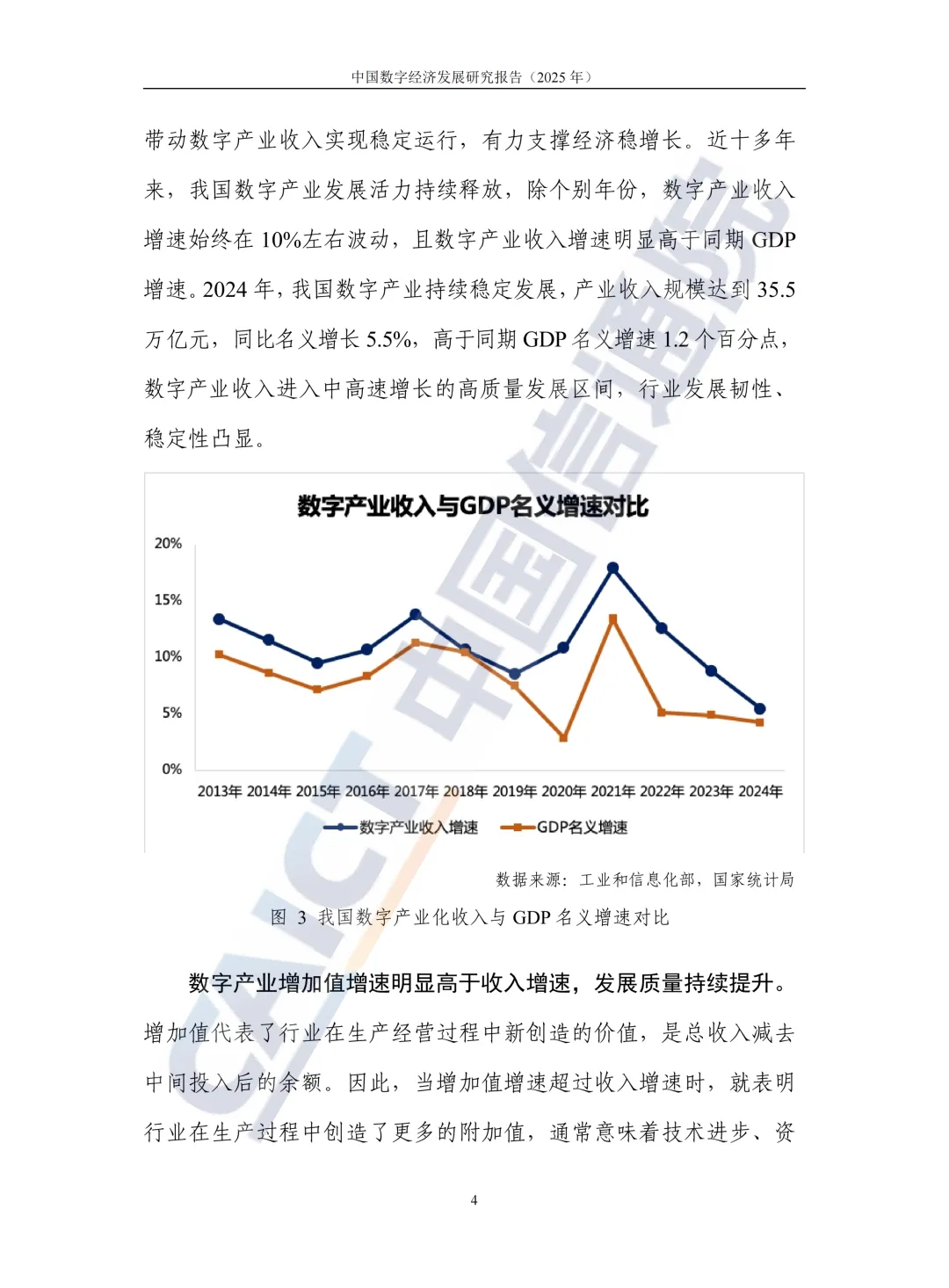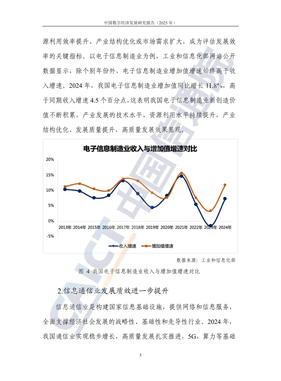报告指出,我国数字经济已迈入全面扩展期,呈现 “量质齐升” 态势。数字产业稳健发展,2024 年收入规模达 35.5 万亿元,电子信息制造业增加值增长 11.8%,软件和信息技术服务业收入增速达 11.9%。5G、算力、人工智能等新型基础设施全球领先,5G 基站超 454 万个,算力总规模达 788 EFLOPS,为产业升级提供坚实支撑。