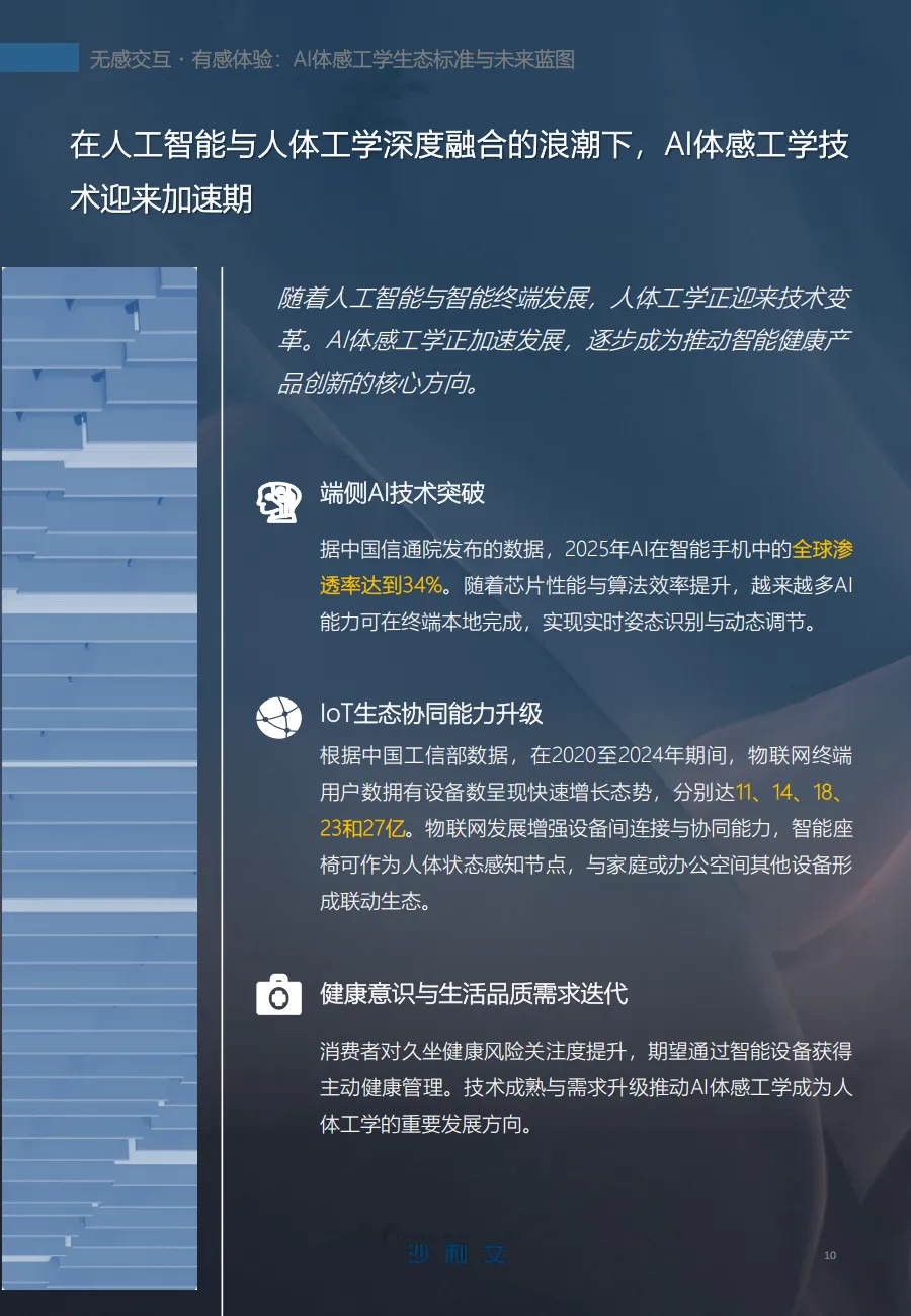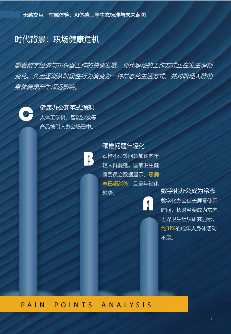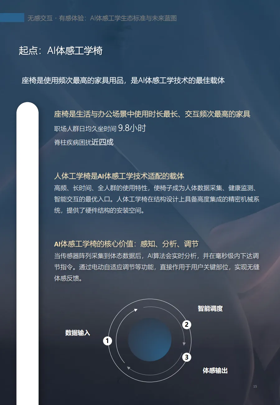基于这一洞察,恒林联合全球专业咨询机构弗若斯特沙利文(Frost & Sullivan),发布《AI体感工学白皮书》,首次提出“AI体感工学”概念——它不再是物理结构的简单堆叠,而是一套融合多模态感知、AI算法与动态自适应的系统化健康服务方案。