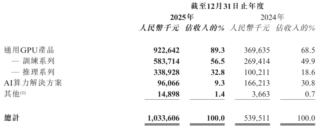 天数智芯2025年来自训练系列收入5.84亿,占比56.5%,较上年同期的2.69亿元增131.5%,主要由于因其性能提升,产品(尤其是天垓Gen 2)的客户需求增加;加强训练系列的销售工作;及加快销售天垓Gen 1库存。