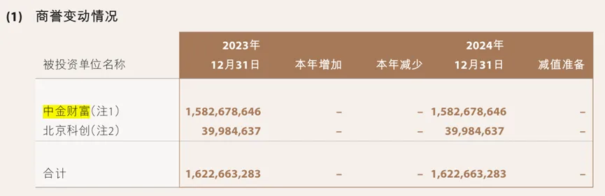 从该图中能够看出,目前中金投资的公司中,仍然以超额的价格收购了中金财富、北京科创两家公司,并且其商誉一直保持高位。特别是前者,其商誉的总金额还是在15.82亿左右,足以说明当时中金对于收购中金财富的目标是极其确定的。