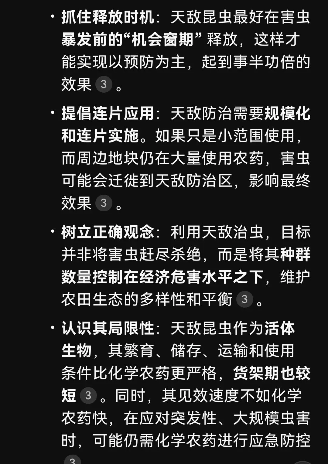 微生物菌肥和生物农药,相比于传统化学肥料,必须体现出优势。值得骄傲的是,中国的天敌防治领域世界领先。天敌防治,就是培养害虫的天敌,大量捕食害虫。比如草蛉捕食蚜虫,赤眼蜂寄生玉米螟。当然,实际使用需要注意如下条件: