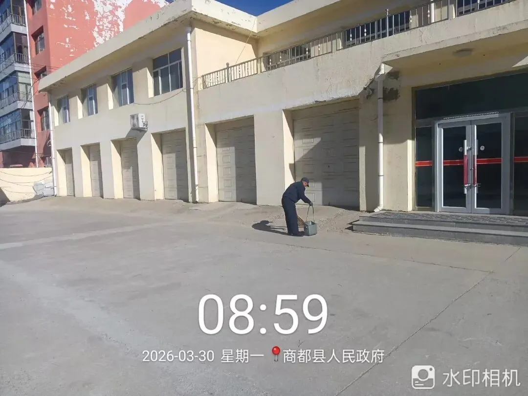 城乡居民服务中心安保人员及政府各单位安保人员清理各区域卫生