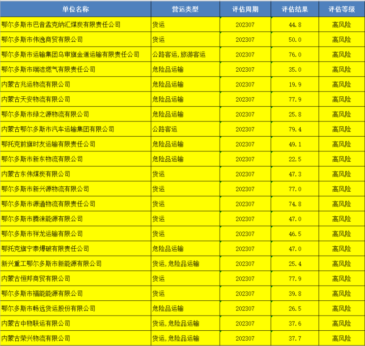 1、企业名下机动车近三个月发生一次死亡3人及以上事故(同等责任及以上);