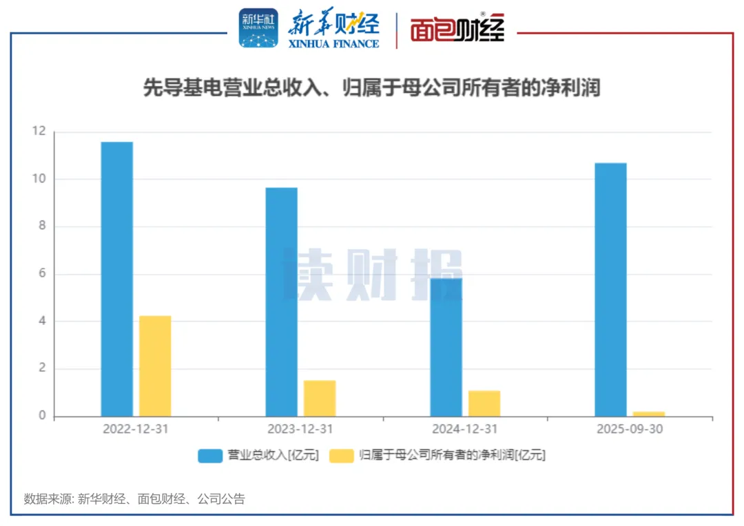 近年来,先导基电营收、利润出现接连下滑,直至2025年营收出现反弹。公司2025年前三季度实现营业总收入10.69亿元,同比增长247.43%;归母净利润1866.72万元,同比扭亏为盈。