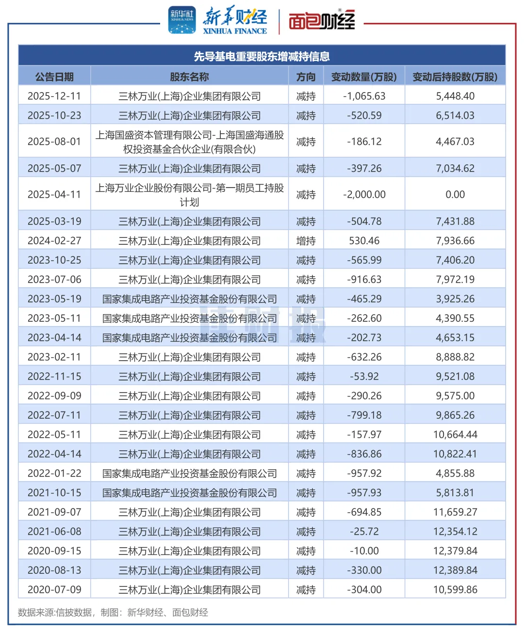 自2020年,国家集成电路产业投资基金股份有限公司累计减持2846.47万股,三林万业(上海)企业集团有限公司(以下简称“三林万业”)净减持超过7500万股。