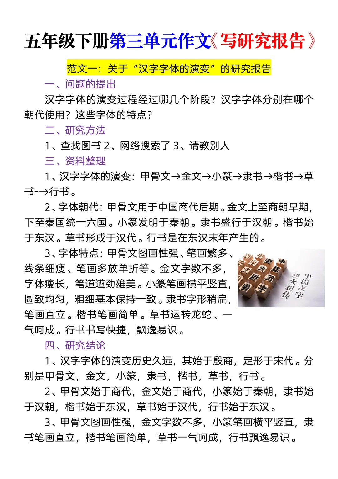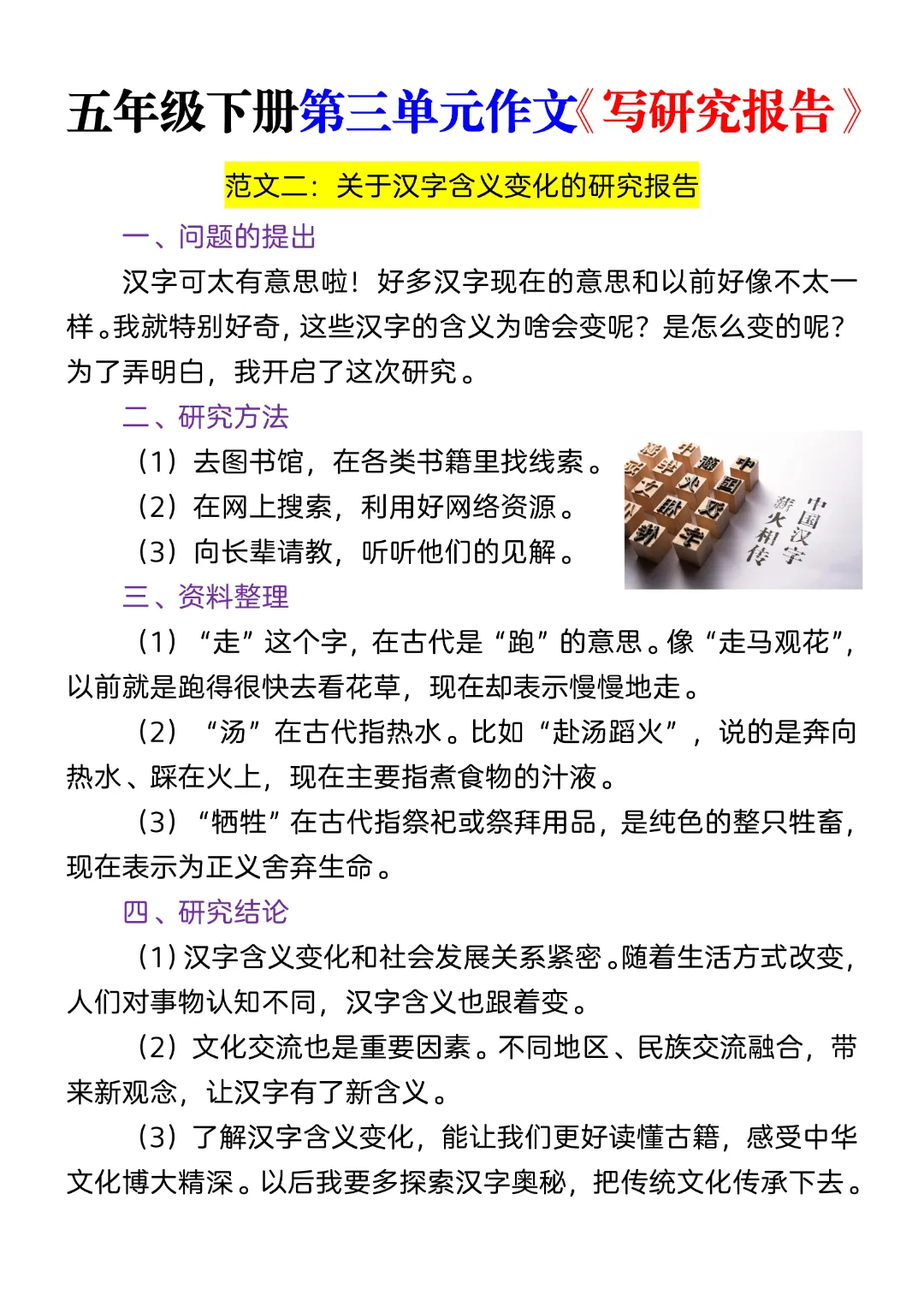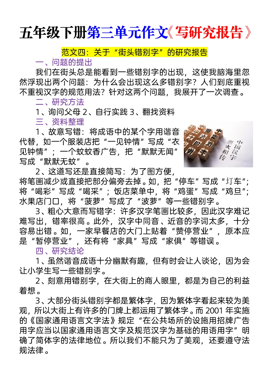 五年级下册第三单元作文《写研究报告》