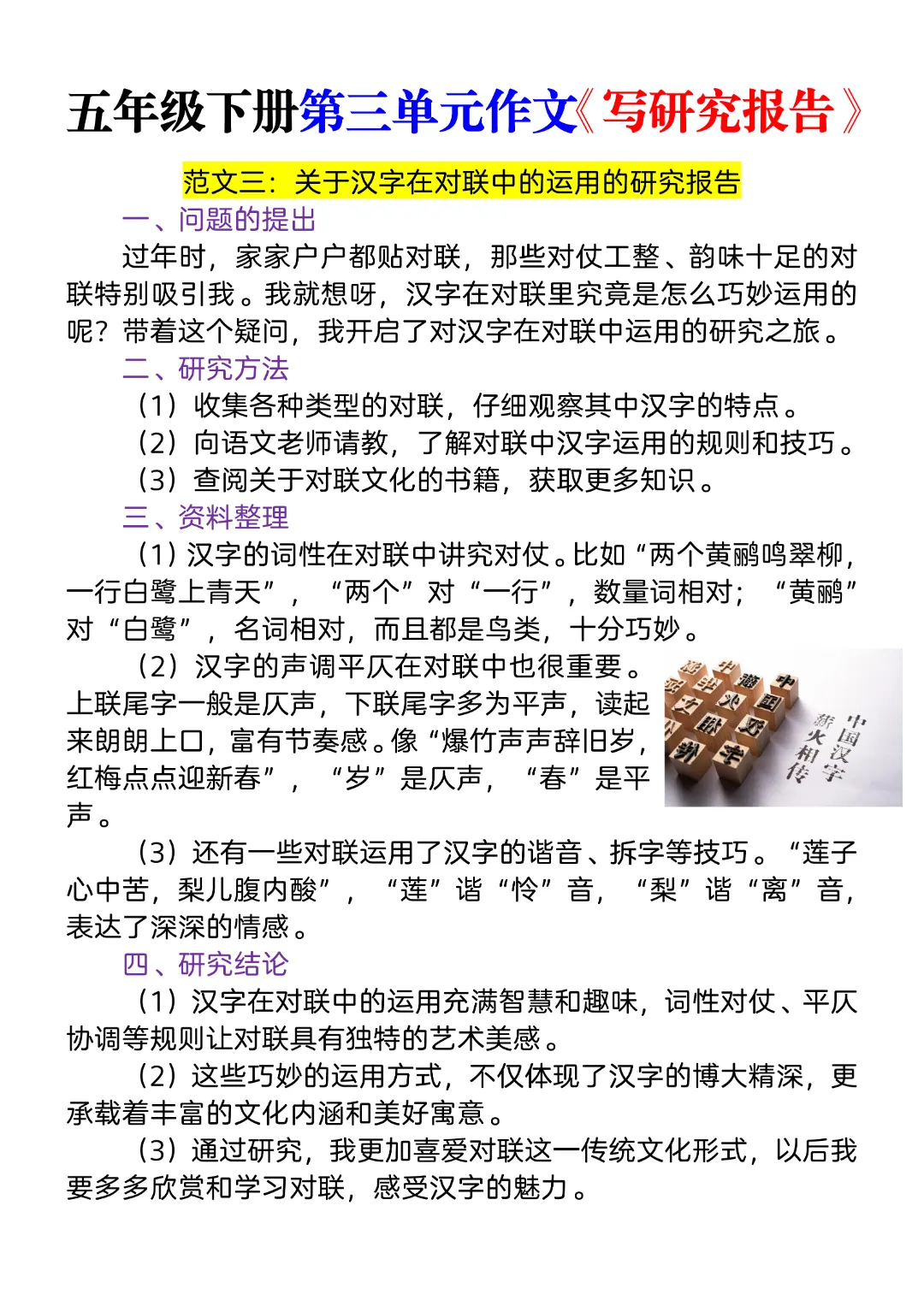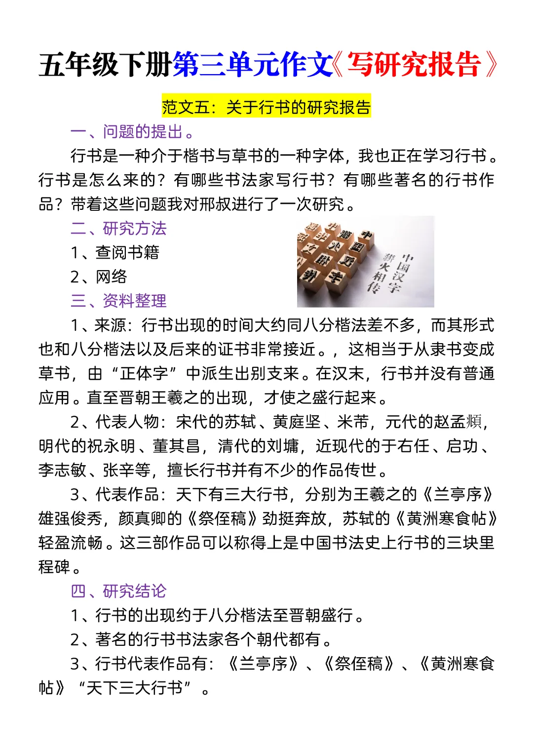 五年级下册第三单元作文《写研究报告》(优秀范文5篇),还没写的参考下