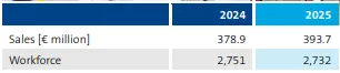 科德宝医疗2025年销售额为3.937亿欧元,较2024年的3.789亿欧元实现了4%的小幅增长。员工总数保持稳定,约为2732人,极小幅下降,可忽略不计。
