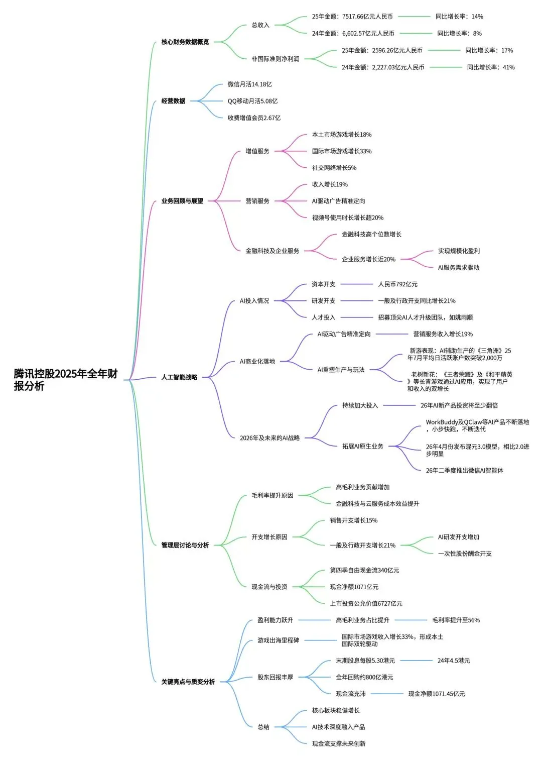 腾讯在25年业绩说明会宣布26将增加AI投入+减少股票回购,26年对AI产品的投资,将较25年增加一倍以上。还有好消息是,腾讯终于不再把主要投入放在元宝上了。这次财报里,腾讯正式官方确认了一件事,就是会在微信里做agent,智能体,而不仅仅是那种@元宝的问答式的AI。拥有流量入口的腾讯,也许智能体才是它的答案,具体是否成功静待时间。
