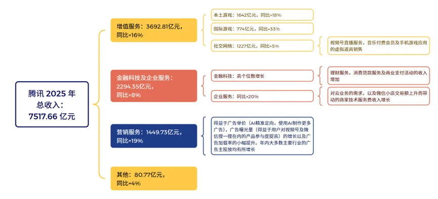 可以看到25年的增速主要为游戏的高增长以及AI带来的营销服务的高增长和企业服务的高增长。