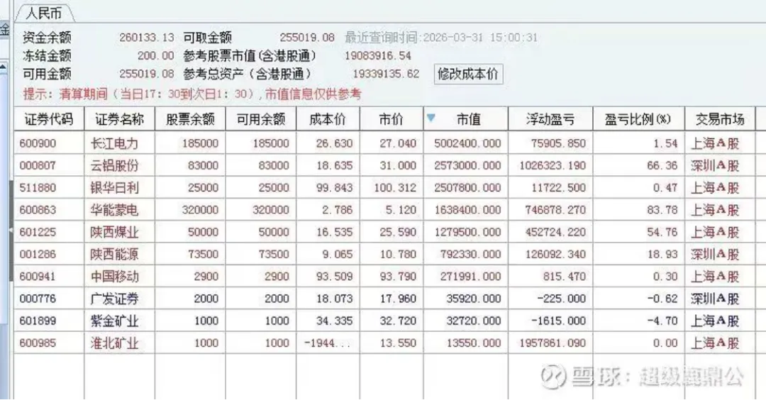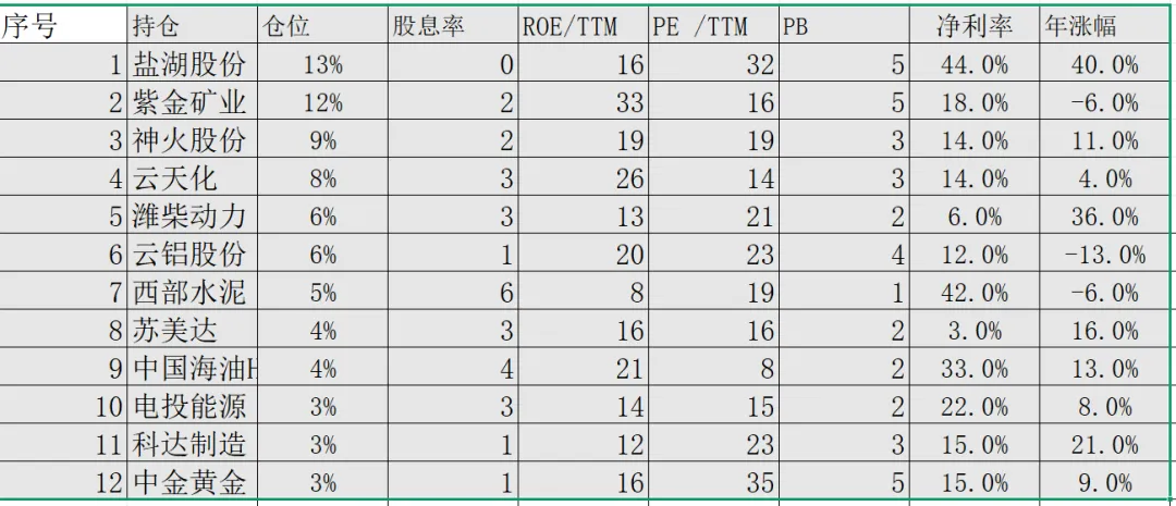 以下是10年只有1年亏损且10年年化收益率20%左右的大V鹿鼎公的最新持仓。
