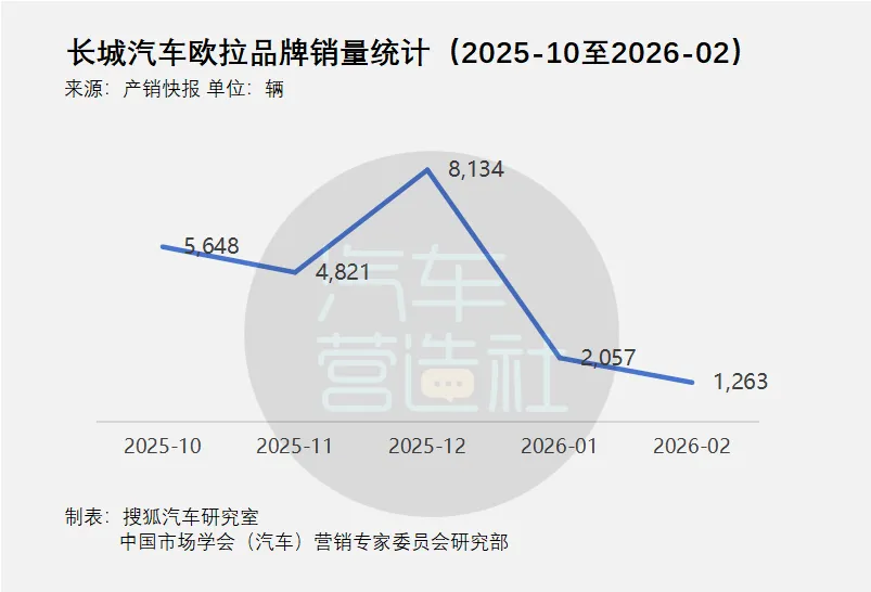 2025年9月22日推出的全新纯电SUV欧拉5,是品牌叙事改变后推出的第一款产品,却没有改变欧拉销量的颓势。欧拉5推出后,欧拉整体销量并未上升,尽管年底叠加车企冲量政策有所反弹,但2026年1月就迅速下滑到2000辆,2月进一步跌至1200辆。