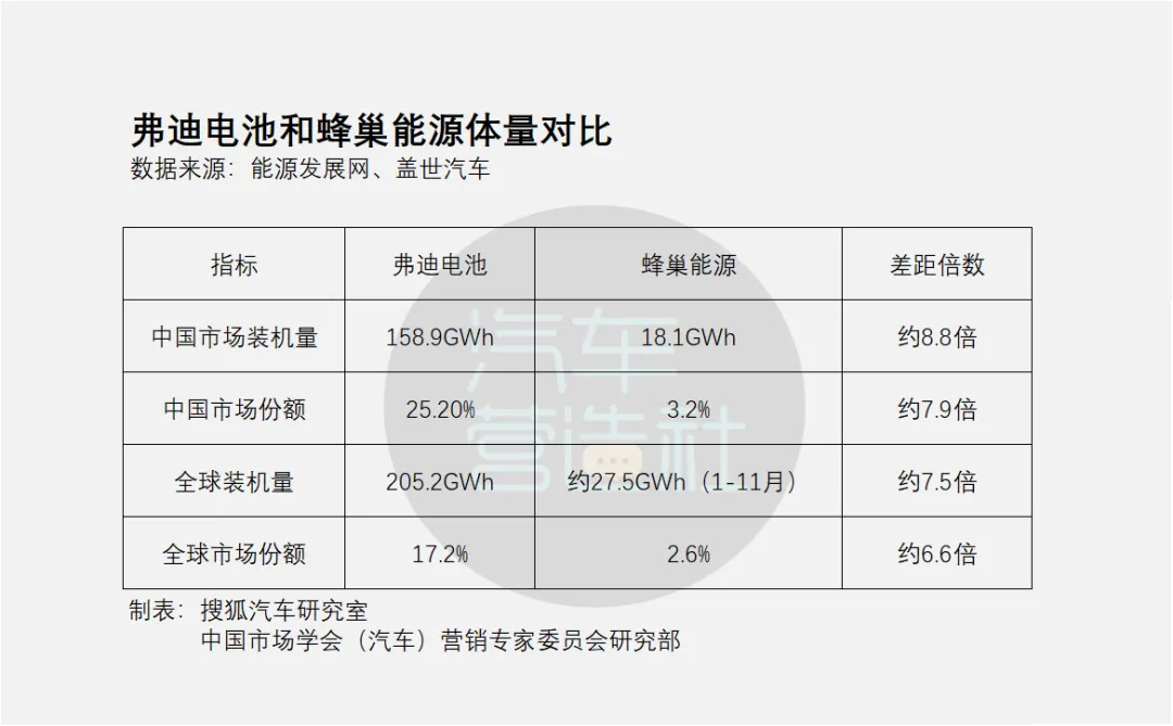 蜂巢能源是一个最典型的样本。长城在新能源电池上起步并不算晚,蜂巢能源前身是长城汽车电池事业部,2018年独立时,弗迪电池尚未从比亚迪独立,但到了2025年,两者的体量差距已经十分悬殊。