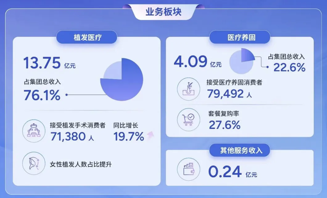植发业务全年服务消费者71380人次,较2024年同期增长19.7%,服务规模创下历史新高,彰显核心业务的强劲增长动力。养护业务全年服务消费者79492人次,复购率稳定保持在27.6%的健康水平,用户粘性持续提升,形成植发与养护协同发展的良好格局。