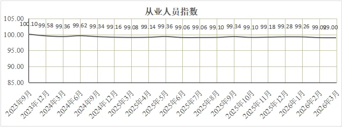 从构成行业景气指数的2个分类指数看,新订单指数为96.10,环比上涨0.01,指数仍低于临界点,但较上月略有改善;从业人员指数为99.00,环比持平,表明企业从业人数保持平稳。