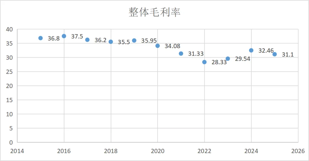先看核心财报数据:2025 年蜜雪冰城中报显示,上半年营收 148.75 亿元,毛利 47.06 亿元,整体毛利率稳定在 31.64%。回看近十年毛利率走势,始终保持稳健区间,对比同行平价茶饮品牌,盈利能力稳居上游。可同样做低价、做加盟,其他品牌却很难实现这般规模扩张。