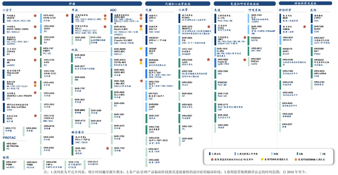 公司深耕肿瘤、代谢和心血管疾病、免疫和呼吸系统疾病、神经科学等多个治疗领域,已在中国获批上市24款1类创新药、5款2类新药,创新成果稳居行业领先地位。