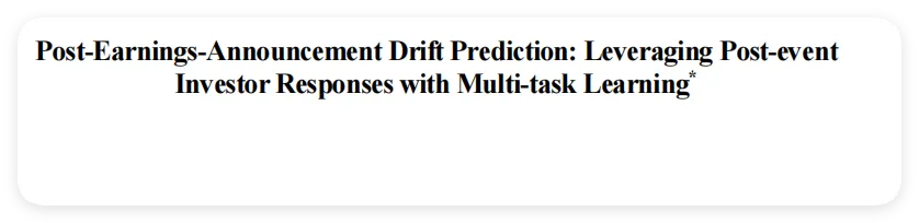 原文:Post-Earnings-Announcement Drift Prediction: Leveraging Post-event Investor Responses with Multi-task Learning 出版:ISR 机构:特拉华大学(美国)、亚利桑那州立大学(美国)