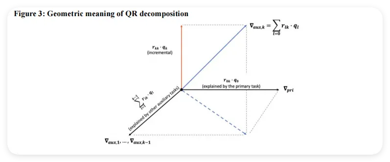 如图3所示,对于第 个辅助任务的梯度 ,QR分解会把它拆成两部分: