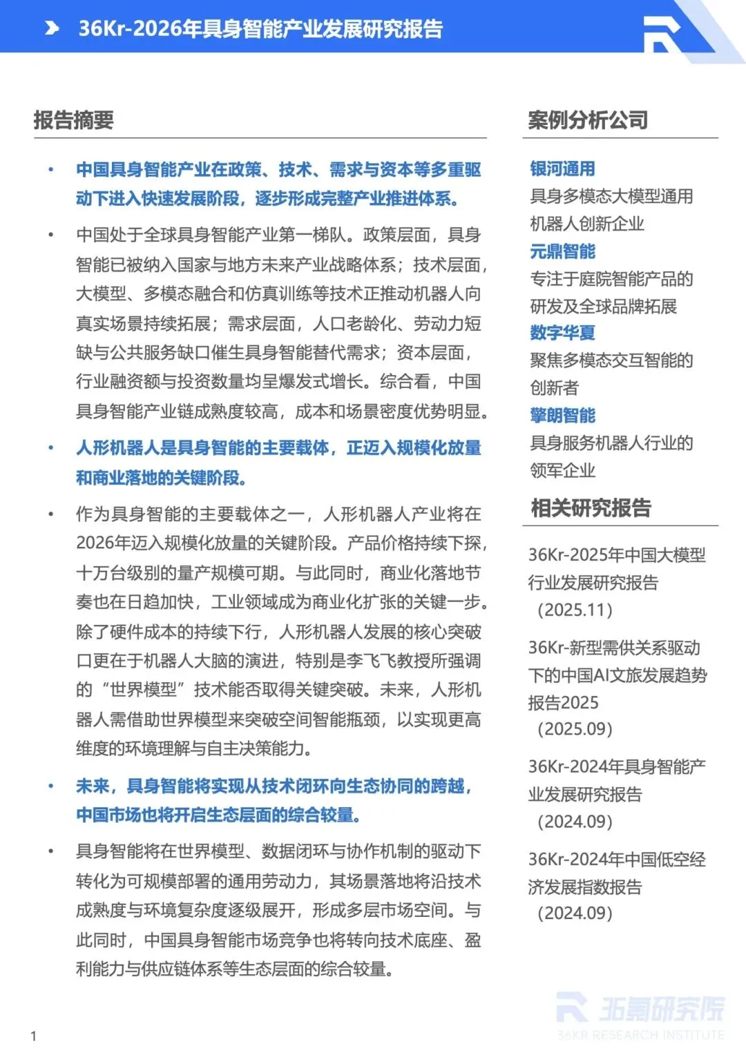 :银河通用以全栈自研体系实现多场景规模落地,获工业巨头千台级订单;元鼎智能聚焦庭院智能场景,以认知 AI 技术引领全球泳池机器人市场;数字华夏深耕多模态交互,产品落地金融、政务等场景。未来行业竞争将转向技术底座、供应链体系与盈利能力的生态较量,具身智能将从技术闭环向生态协同跨越。