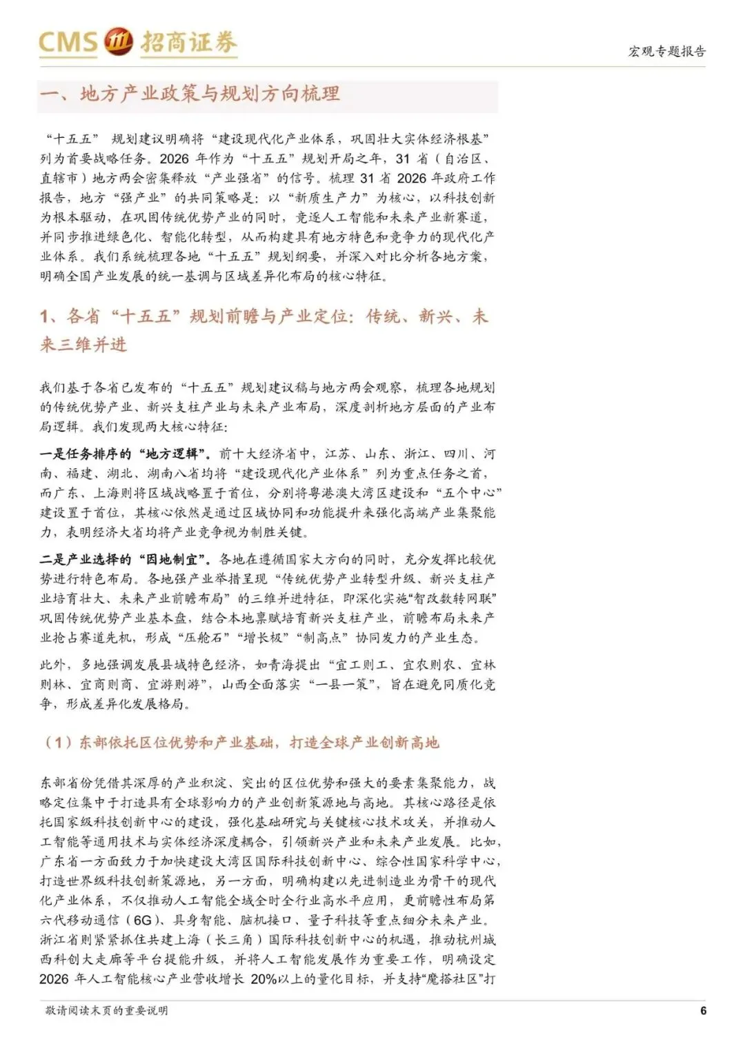 回复暗号:产业研究专题系列报告之二:规划篇,地方层面“十五五”产业规划与布局-260325-招商证券-41页