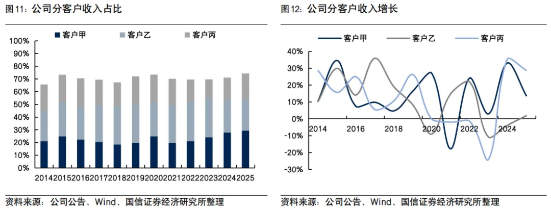 2025年营收增长8%,核心净利润小幅增长。2025年申洲国际实现营业收入309.94亿元人民币,同比增长8.1% ;归母净利润58.25亿元人民币,同比下降6.7%。若剔除政府补助、汇兑损益、固定资产处置损益、净利息收入后的核心净利润,同比增长1.3%至49.9亿元,上下半年分别+0.1%/+2.4%。毛利率同比下降1.8个百分点至26.3%,主要受员工平均薪资上涨、柬埔寨新工厂产效爬坡、以及与客户分担美国市场部分进口关税等因素影响。现金流充裕,净现比约为1.0,全年派息率提升至60.9%。下半年收入增长降速至2.2%,分客户看仅阿迪订单维持较快增速,优衣库订单增长降速,耐克和其他品牌整体出现同比下滑;分地区看中国和日本市场出现下滑。毛利率同环比降至25.6%,主受美国关税分担及员工工资上涨影响;汇兑损失扩大,占收入比例同比-2.6百分点。主受毛利率下滑和汇兑损失影响,归母净利润同比-20.0%至26.5亿元;核心净利润同比+2.4%。业务拆分:阿迪和欧美地区收入保持20%以上较快增长。1)分品类,运动/休闲/内衣分别同比+5.9%/+16.7%/-2.3%;2)分客户,来自客户甲/乙/丙分别同比+13.7%/1.8%/28.7%,除前三大以外客户-4.0%;3)分地区,欧洲和美国市场增速领先,分别+20.6%/21.0%;日本和其他市场分别+6.4%和10.9%;中国市场出现下滑,同比-8.4%。申洲增长表现好于品牌自身销售与同行,海外产能持续释放。申洲收入增长表现好于主要客户自身增长,份额进一步提升。对比同行,申洲份额最大且仍在提升,展现竞争优势。海外产能方面,柬埔寨新建成衣工厂已聘用员工约5400人,规模接近预期用工的九成,生产效率已达正常水平的约85%,2026年越南布厂和柬埔寨工厂产能有望逐步释放;此外集团正在规划于印尼投资建设新的成衣生产基地。国内基地技术改造推进,安徽成衣基地已新购置土地约16公顷,一期项目土建工程即将竣工。风险提示:原材料价格大幅波动;汇率大幅波动;贸易政策风险。文字节选自报告《国信证券-财报点评:申洲国际(02313.HK)-2025年收入增长8%,核心净利润小幅增长》,进入小程序查看报告全文