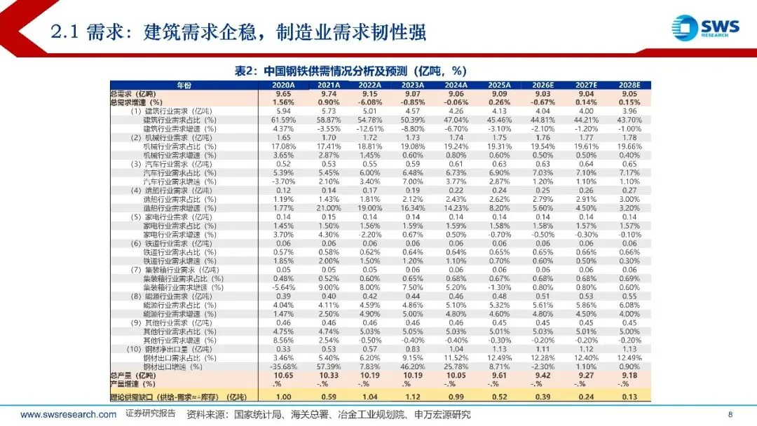 2)供给端,政策限产+部分企业现金流压力推动行业供给加快出清。政策端提出"反内卷"的背景下,钢铁去产量为中长期基调,节能降碳要求有望加快落后产能出清,且行业兼并重组也有望推动未来集中度的提升,预计供给格局整体将有所优化。