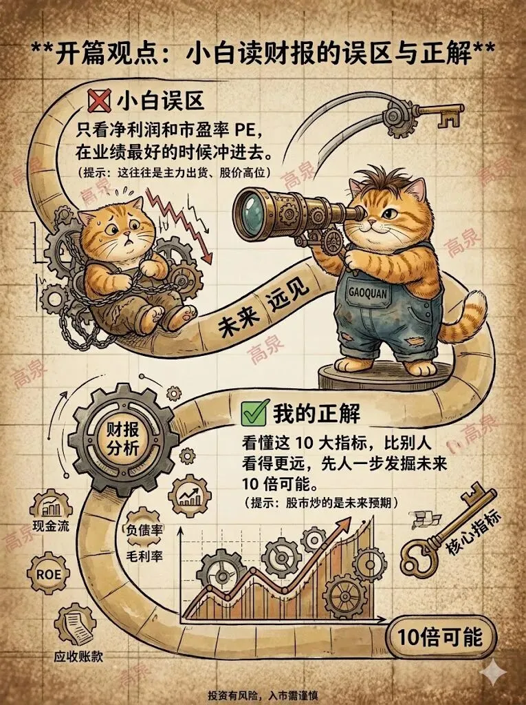 关键词:#财报阅读#小白误区#核心指标#净利润#市盈率(PE)#未来预期#10倍机会