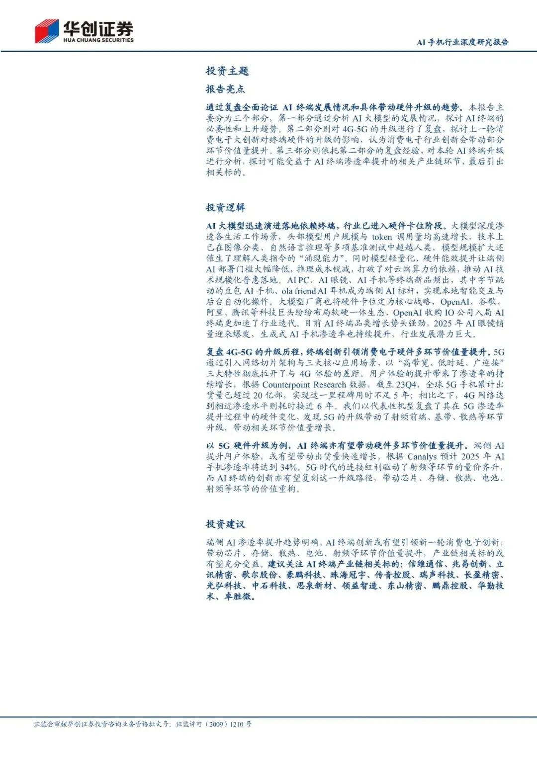 AI手机行业深度研究报告:以5G硬件升级为例,AI终端亦有望带动硬件多环节价值量提升-260326-华创证券-36页