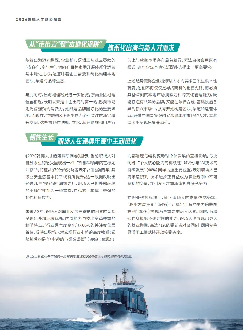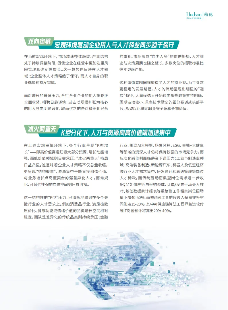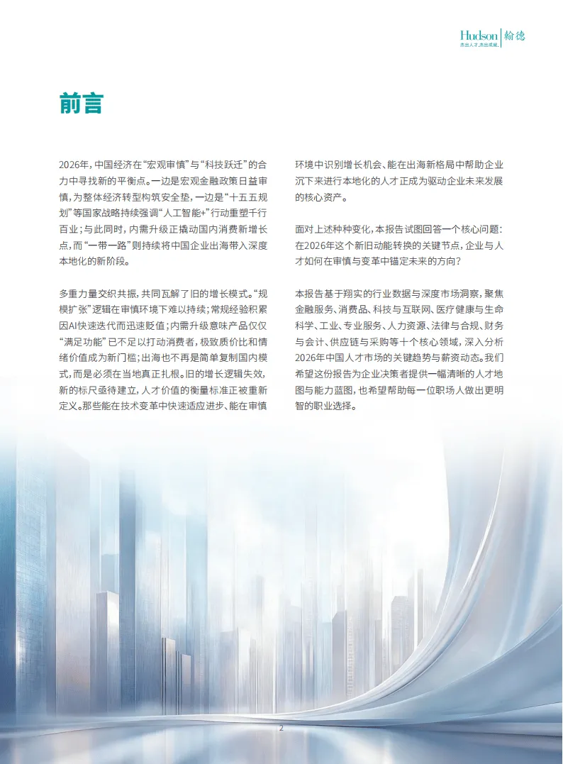 2026年,中国经济在宏观审慎政策与科技跃迁的双重作用下,新旧增长模式加速迭代,人才市场随之呈现多维度变革。翰德人才趋势报告聚焦十大核心领域,揭示了企业用人与人才发展的关键走向。