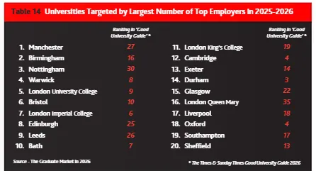 排名第一的是曼彻斯特大学!在英国100家顶尖雇主的校招目标院校里,曼大凭借广泛的行业认可度与人才培养实力,共获得27家顶尖雇主的青睐,稳居全英第一。