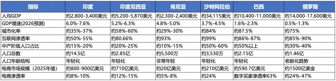 品牌出海的核心是“消费升级与心智占领”,需要目标国具备一定的中产阶级基数、年轻化的人口结构以及良好的数字化触达渠道(电商/移动支付)。