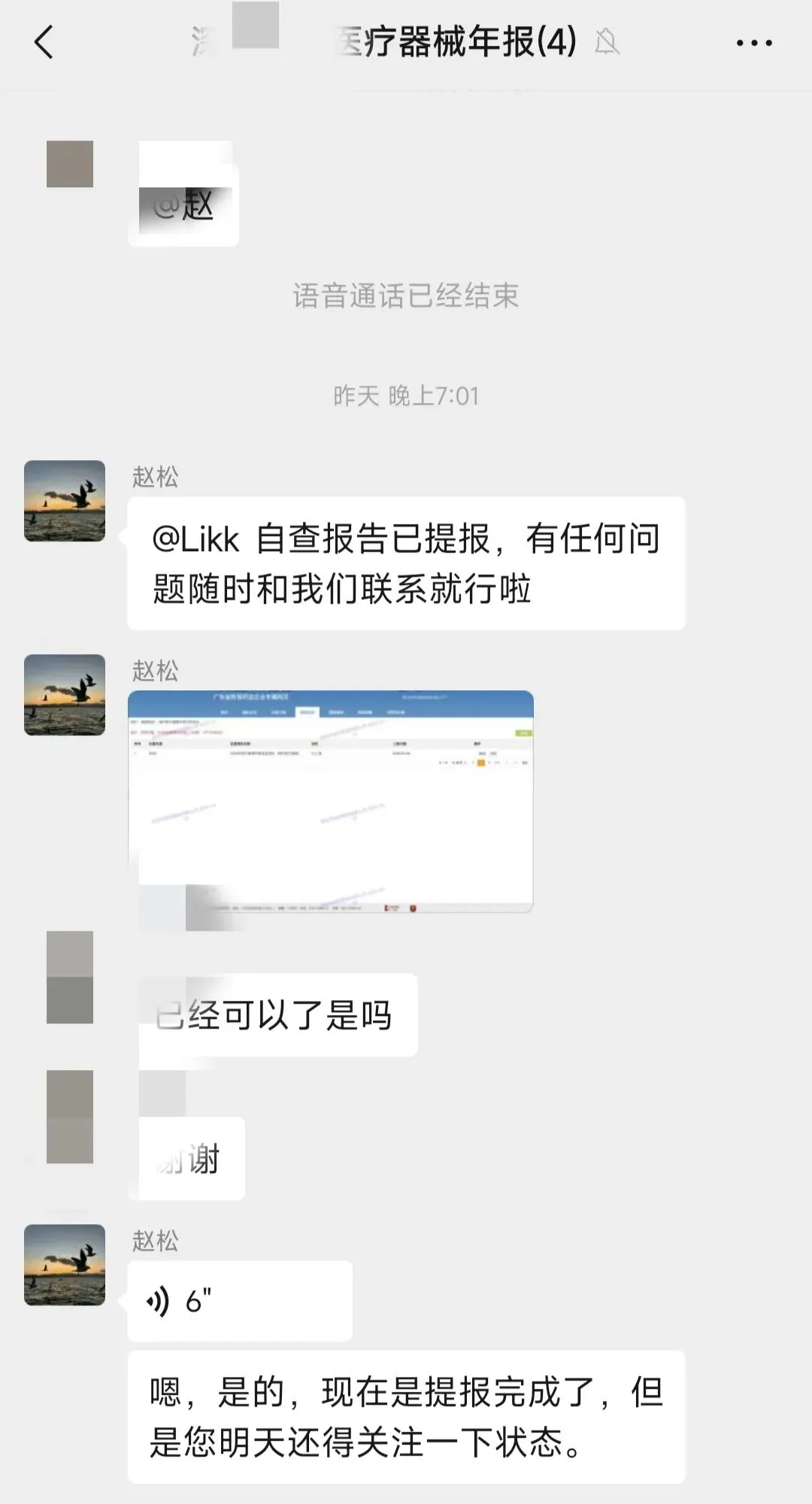负责细心指导协同客户完成25年医疗器械年度自查报告,在3月30日截止时间快到来时,接到南方着急的客户顺利完成填表提交。