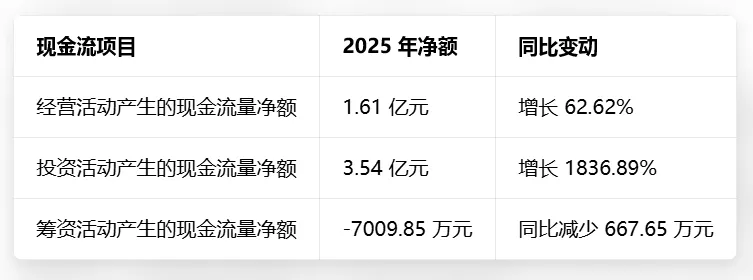 现金流是企业经营的“生命线”,2025年公司现金流状况持续改善,主营业务造血能力显著增强:
