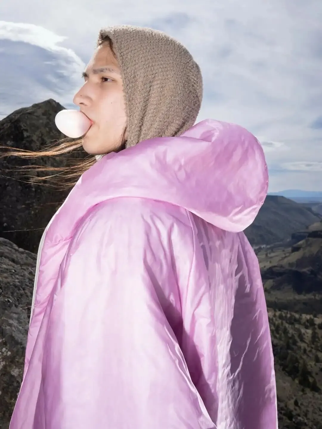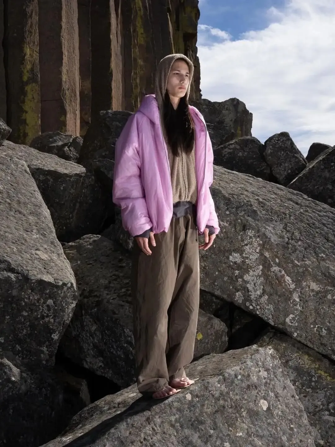 与以往不同,本季的重点不在参数,而在表达。Pink Lavender 成为贯穿整组产品的主轴色,并在影像中与大面积樱花场景绑定出现。从山地岩壁到春季植被,粉色不再是点缀,而是被放大为主导视觉语境的关键变量。这种处理,使原本偏理性的机能单品,被置入更具情绪感与季节感的观看逻辑中。