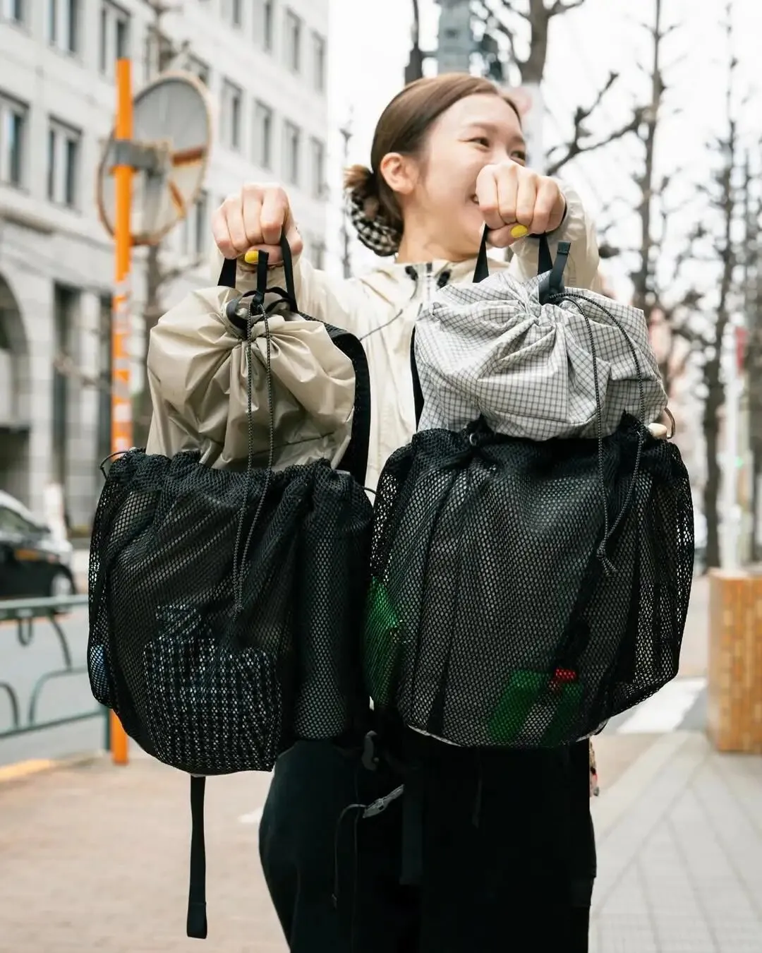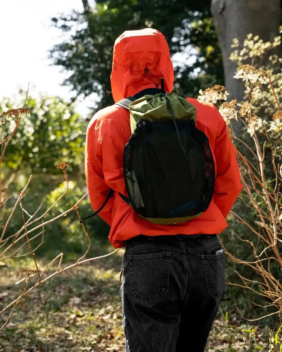 在轻量化背包逐渐陷入参数内卷的当下,这款背包的解法显得更为务实。可折叠收纳(Packable)的设定,让它天然适合作为长途旅行或重装露营时的“副包”存在;而网眼外袋不仅解决了潮湿物品的隔离收纳问题,也为使用者提供了一个展示个性化小物、构建视觉层次的窗口。