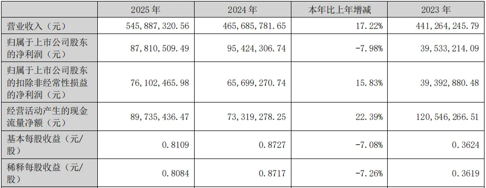 3月31日,工业运动控制系统龙头维宏股份正式发布2025年年度报告。报告期内,公司实现营业收入5.46亿元,同比增长17.22%,增速稳健。然而,归属于上市公司股东的净利润为8781.05万元,同比下降7.98%。
