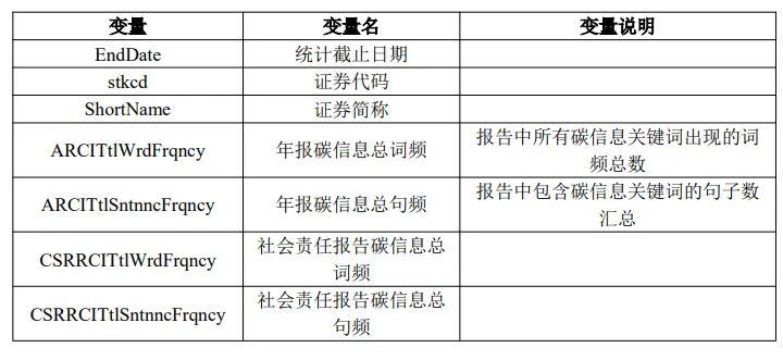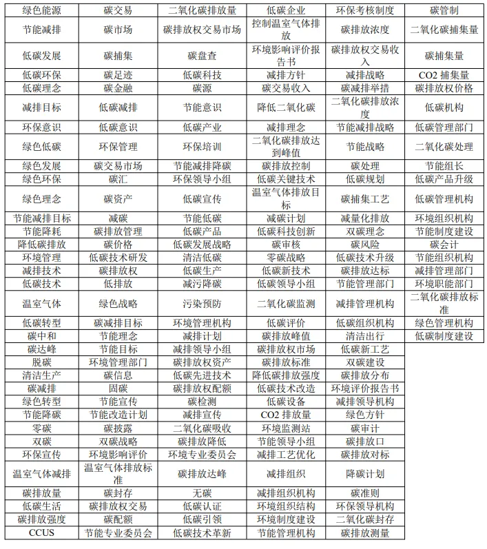 ▪ 数据名称: 企业年报碳信息词频