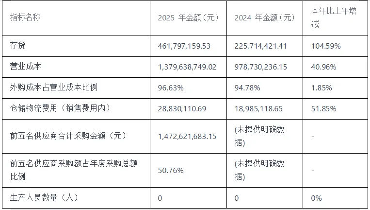 • 存货金额同比增长104.59%至4.62亿元,与营业收入的增长幅度(94.35%)基本匹配,表明公司为满足快速增长的销售需求增加了备货。