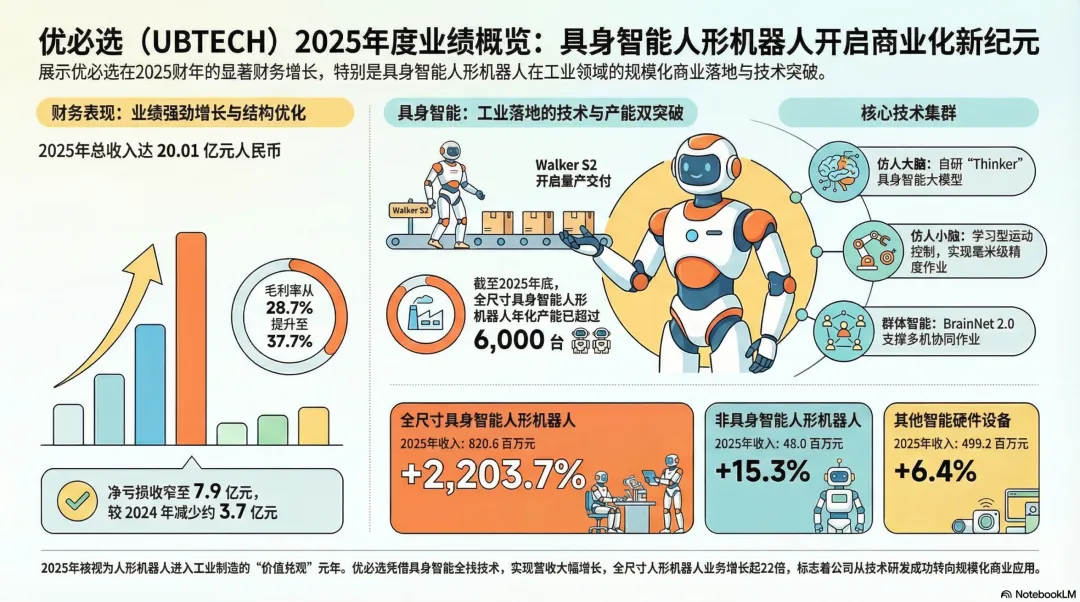 刚刚!“人形机器人第一股”优必选发布2025年度财报,数据显示,其全尺寸具身智能人形机器人业务营收同比猛增约22倍,年化产能已超6000台。