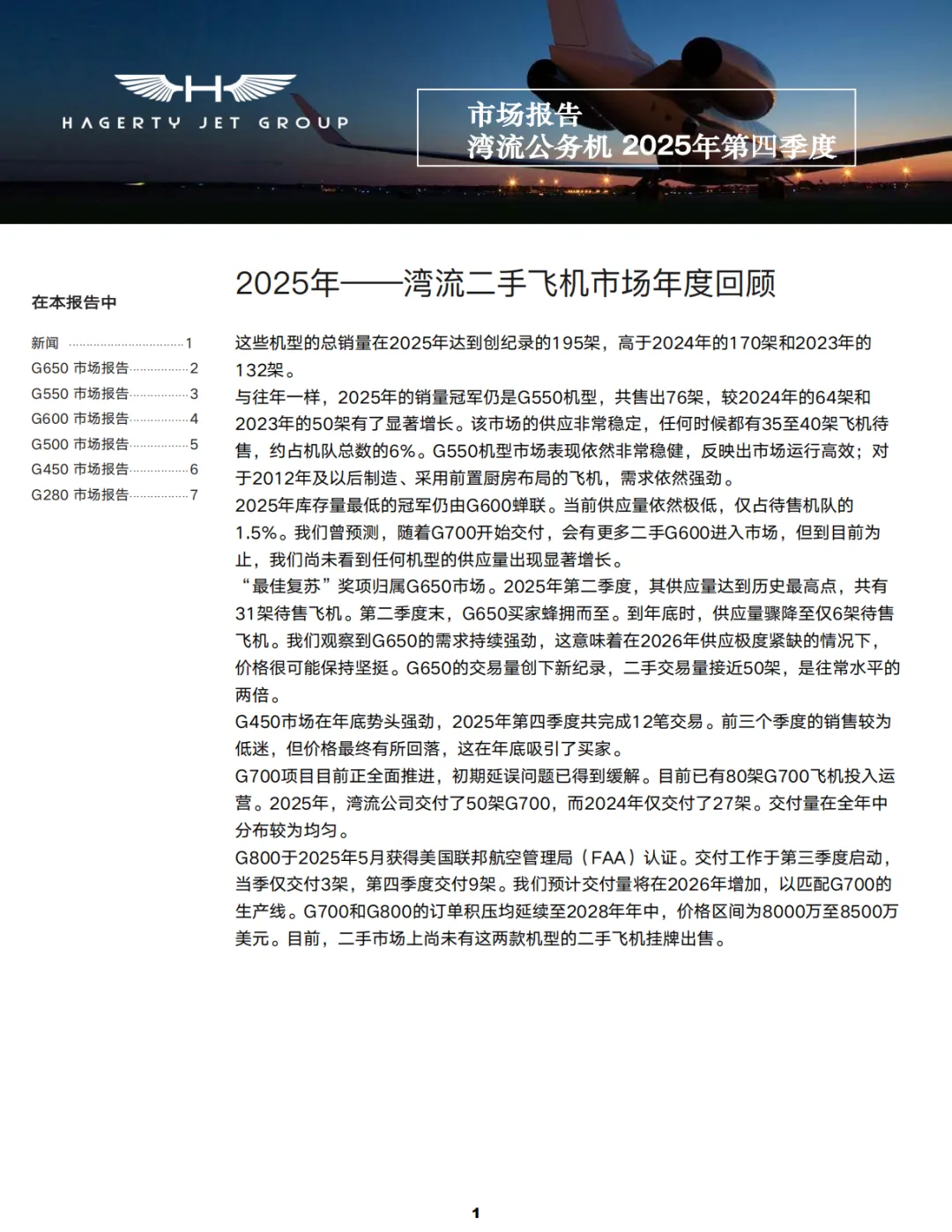 2025年第四季度湾流公务机二手市场报告