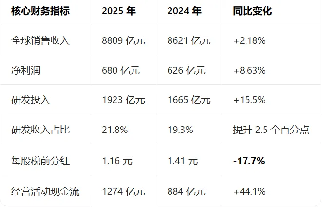 先通过一张表格,清晰看懂华为2025年与2024年核心财务指标的差异,关键数据一目了然: