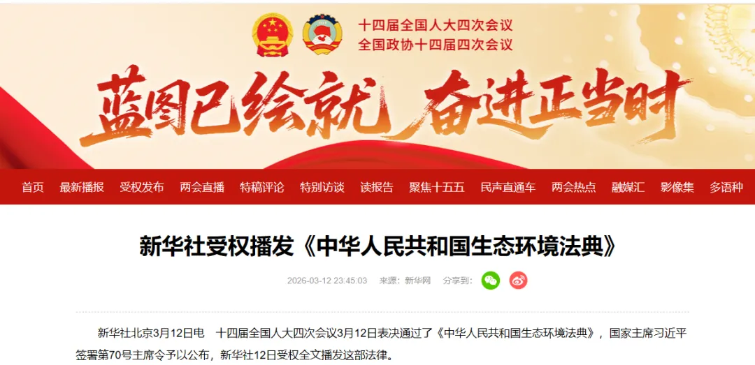 各位企业老板、合作伙伴们,今天必须和大家聊一个关乎所有企业发展的重磅政策!2026年3月12日,十四届全国人大四次会议高票表决通过《中华人民共和国生态环境法典》,8月15日正式施行!作为咱们国家继民法典之后第二部法典级法律,更是首部生态环境领域统一法典,它最核心的突破就是把“绿色低碳发展”独立成编,还将碳排放总量和强度双控制度写进法律,直接把碳达峰碳中和从政策引导变成了法定要求!
